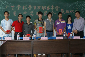 2012年8月22日,“8868体育官网首页入口柘荣奖学助学基金”在8868体育(中国)官方网站 - 登录入口柘荣生产基地顺利召开。本次奖助学活动资助的对象是柘荣一中2012届考上大学的8名优秀学生以及19名家庭贫困的品学兼优的学生。